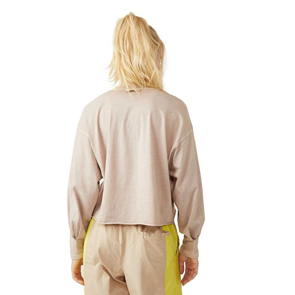 Warm up or cool down in this essential long-sleeve, featured in a boxy silhouette and slightly cropped fit with a classic crew neckline and raw-edge trim.